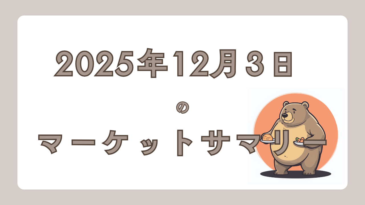 12月3日相場は、米国株が反発、日本株も引き続き底堅い動きとなり、穏やかなリスクオンムードで始まりました。大きな材料が少ない中、市場は週後半の重要指標を待ちながら、落ち着いた動きが続いています。